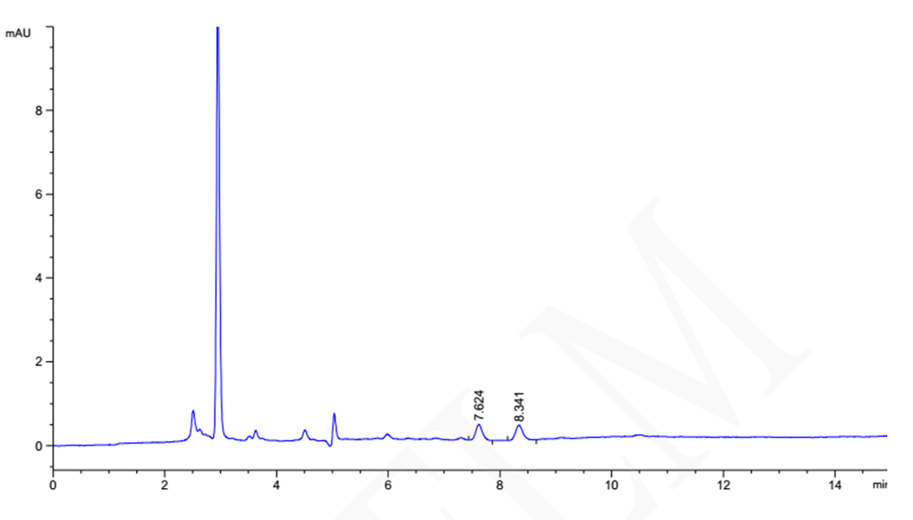 低濃度圖譜:異亮氨酸 0.008 mg/mL 亮氨酸0.007 mg/mL
