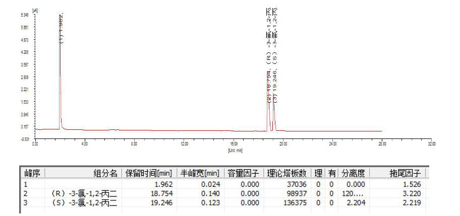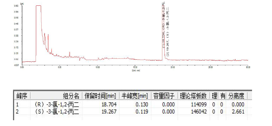 App ID: FLM-F250001 FBX-DEX DET Beta 氣相手性柱對(duì)(R,S)-3-氯-1,2-丙二醇的手性分離 色譜柱:FBX-DEX DET Beta 30m×0.25mm×0.25μm 貨號(hào):BDET-025-025-30 色譜條件:咨詢 樣品:(S)-3-氯-1,2-丙二醇和(R)-3-氯-1,2-丙二醇,甲醇稀釋為濃度1%樣品 進(jìn)樣量:0.3ul 色譜圖(1):R 構(gòu)型先出峰,S 構(gòu)型后出峰,分離度2.2。R 與S 1:1 配比