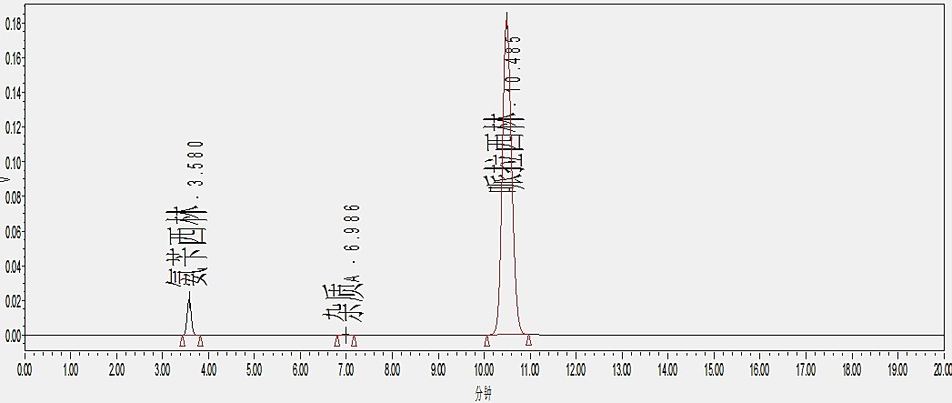 流動相:甲醇-水-0.2mol/L 磷酸二氫鈉溶液-0.4mol/L 氫氧化四丁基銨溶液(450:447:100:3)(用磷酸調節 pH 值至 5.50±0.02)